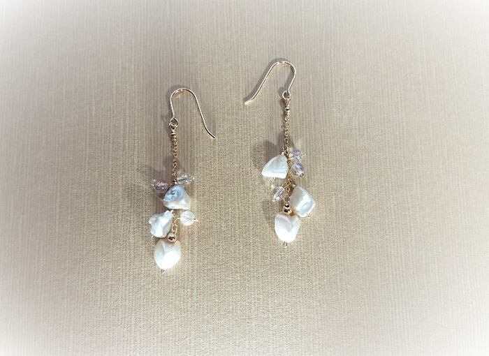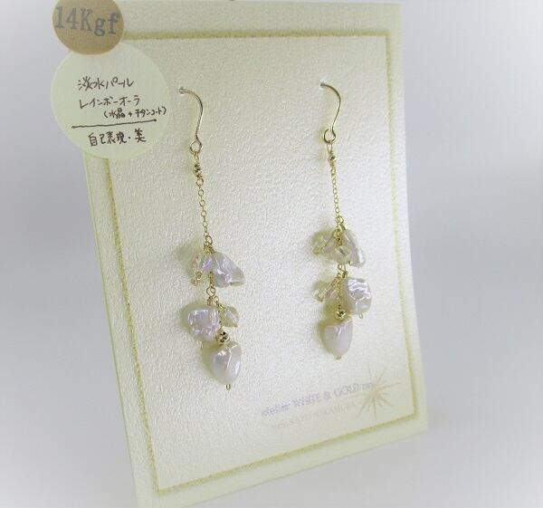 天然ケシパール×レインボーオーラ Mediumピアス (14Kgf)