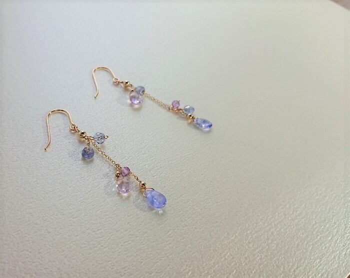 タンザナイト&アメジスト Mediumピアス (14Kgf)